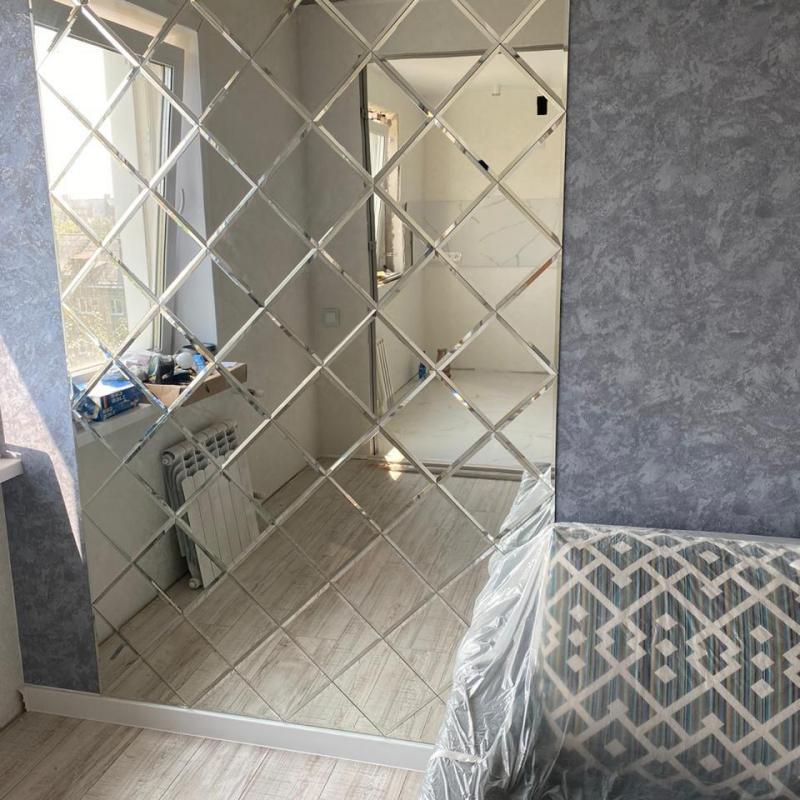 Использована зеркальная квадратная плитка с фацетом.